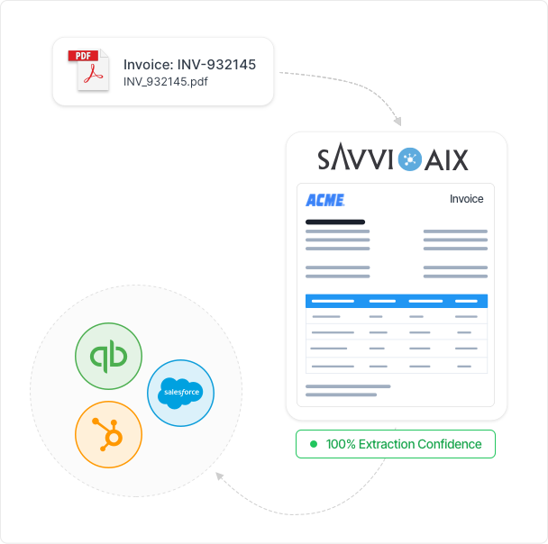 - Once approved, SavviAIX automatically routes and posts all data to your accounting, ERP, or CRM system. Your books are always accurate and up-to-date, closing the loop.